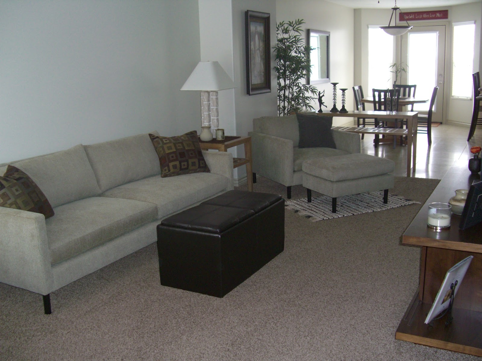 Shane and I decided that after 3 years of living in our home, it was about time to put up some pictures on our big wall in our family room. It took us awhile to try to figure out how we'd like to put up some pictures of family without it looking messy. I think what we were able to come up with (that was still within our budget) worked out great!